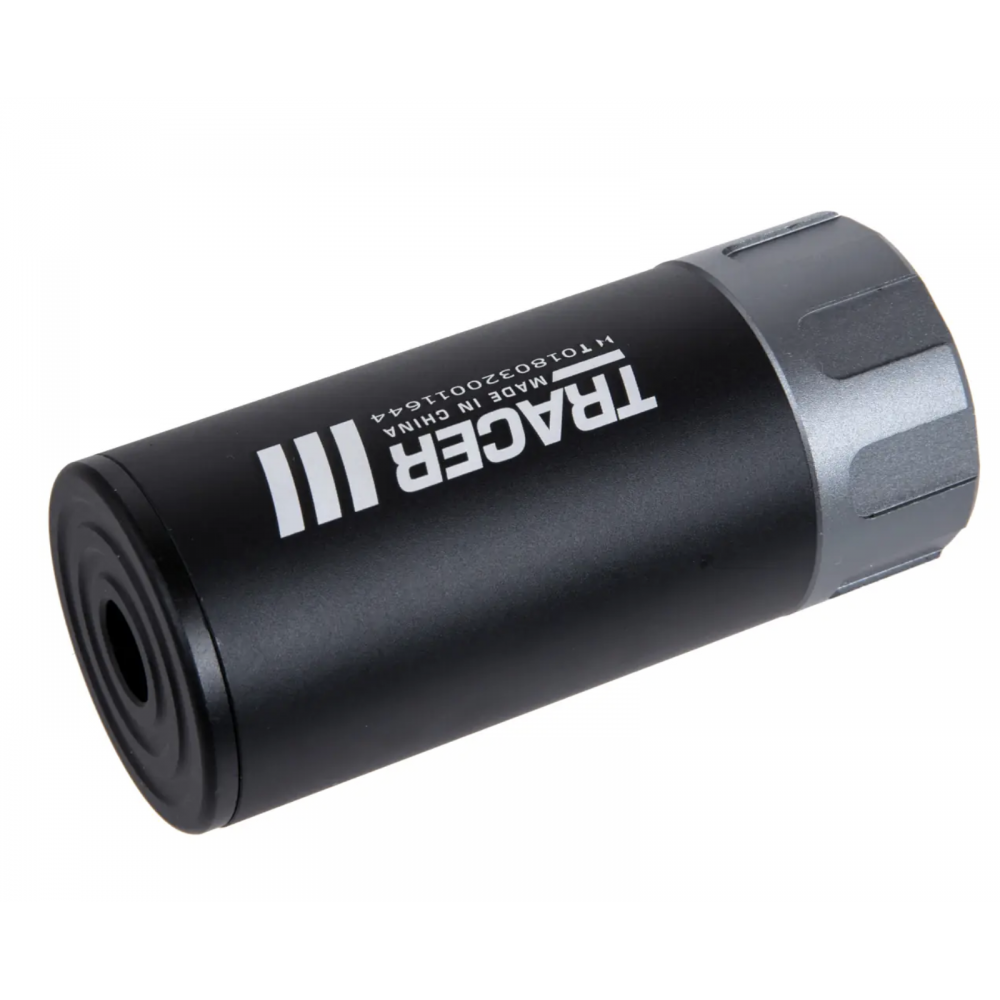 Fabriqué en aluminium durable et en plastique de haute qualité, le silencieux Tracer peut illuminer jusqu'à 35 billes par seconde. Ce modèle illumine les billes vertes ASG et Gelblaster . Une charge complète offre 4 heures d'autonomie . L'interrupteur se trouve à l'extérieur du boîtier. Le Tracer est également équipé d'une LED simulant un flash de tir en 7 couleurs et en mode multicolore .