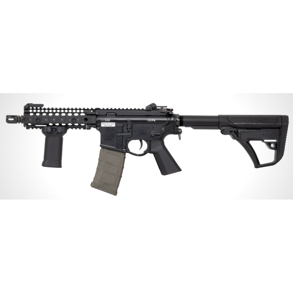 La B4 DAGGER S DANIEL DEFENSE comporte les marquages officiels et une crosse nouvelle génération 3S. Elle est équipée d'un corps M4 full métal, les modes de tir sont repensés pour une meilleur visibilitée, un garde main RIS, des organes de visée rabattable et un frein de bouche modernisé.